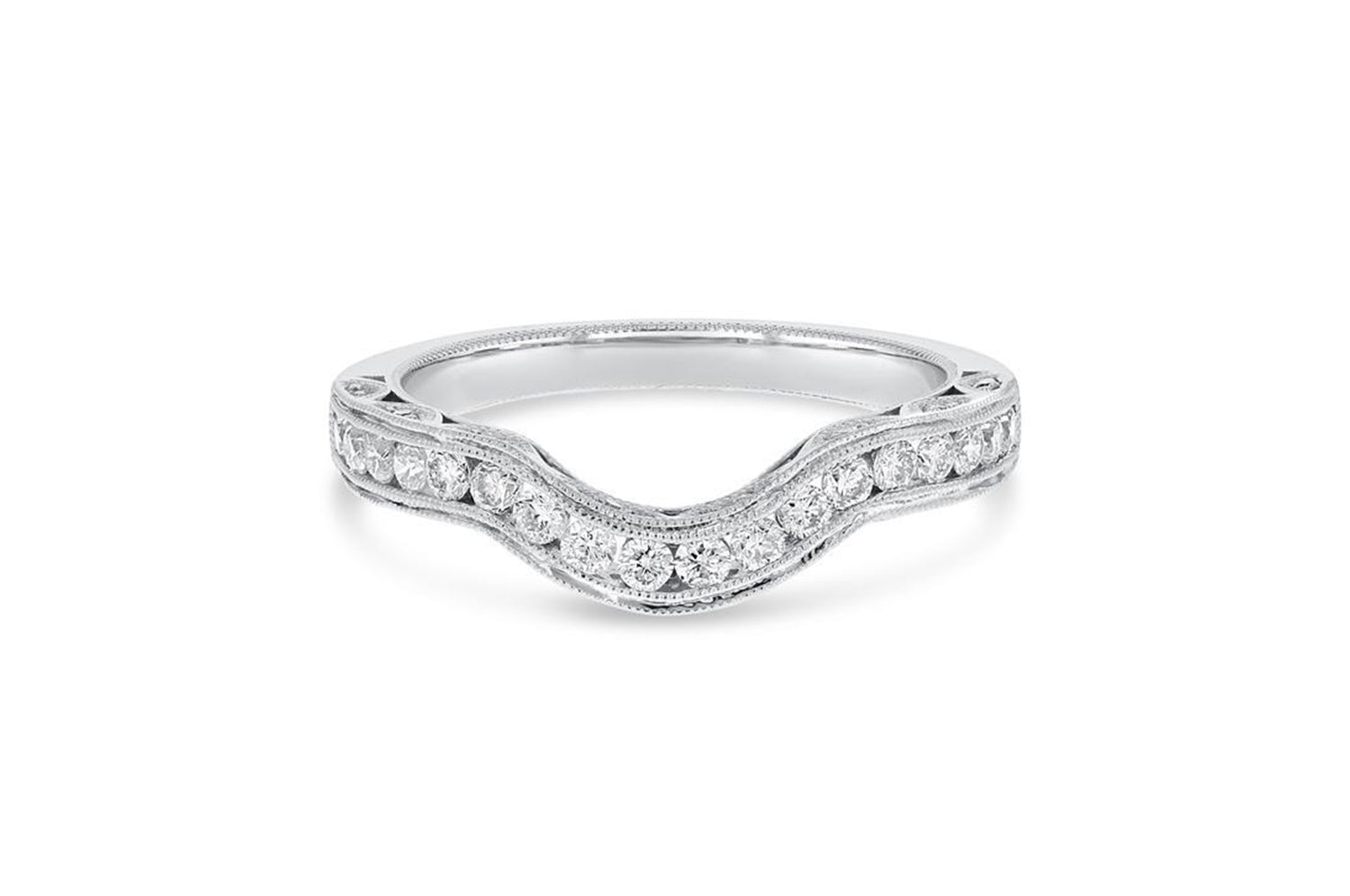 This diamond wedding band features natural diamonds set in 18k white gold. Weighing a total of 0.63 carats. Perfect wedding band or stackable ring.