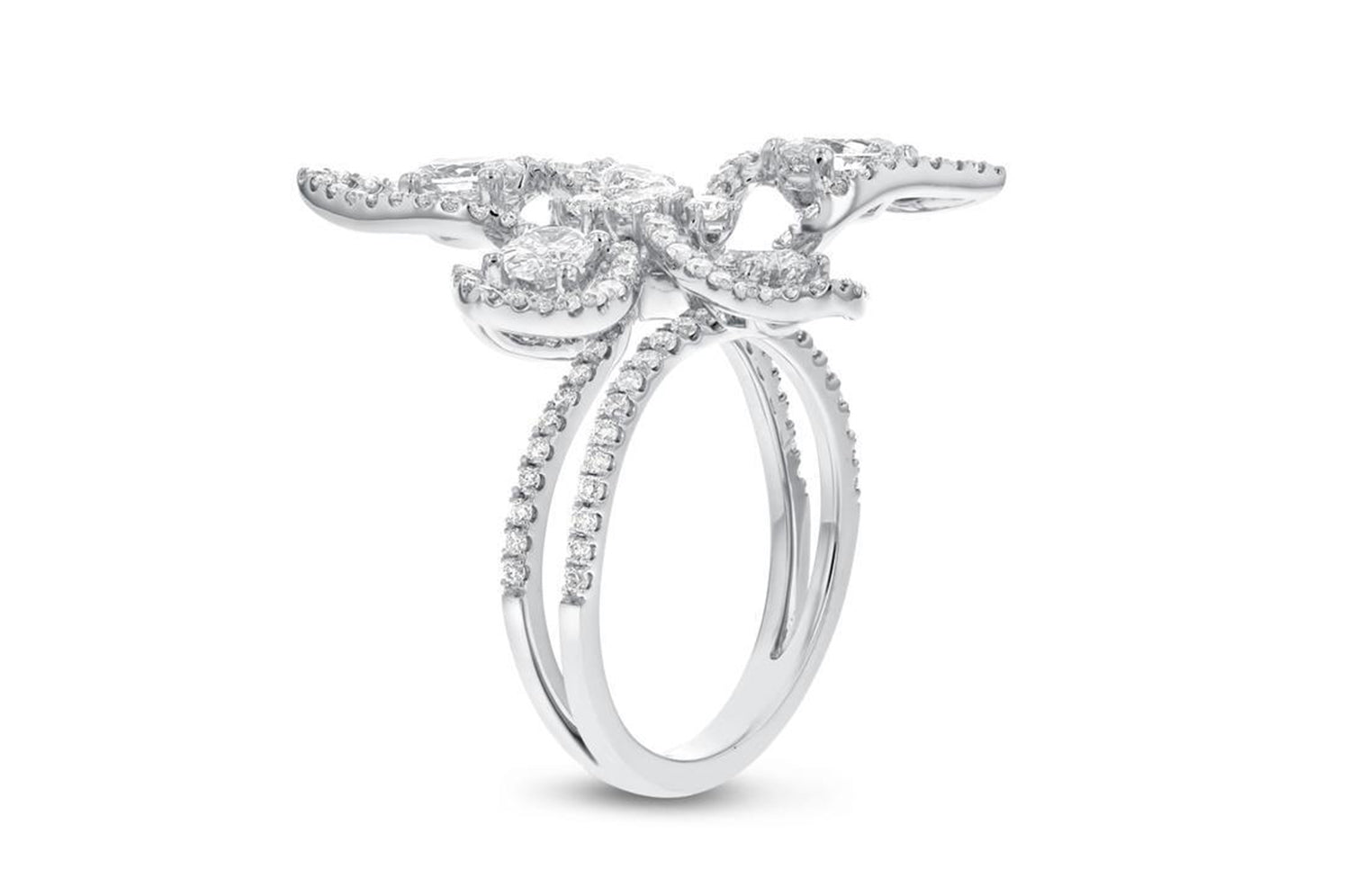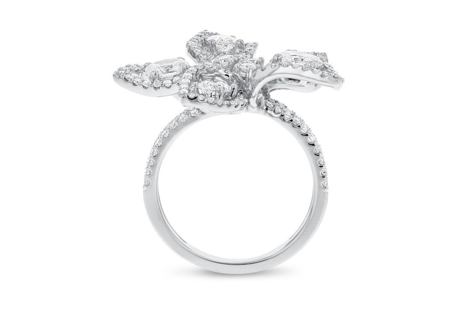 18K White Gold Diamond Flower Ring, 2.38 Carats