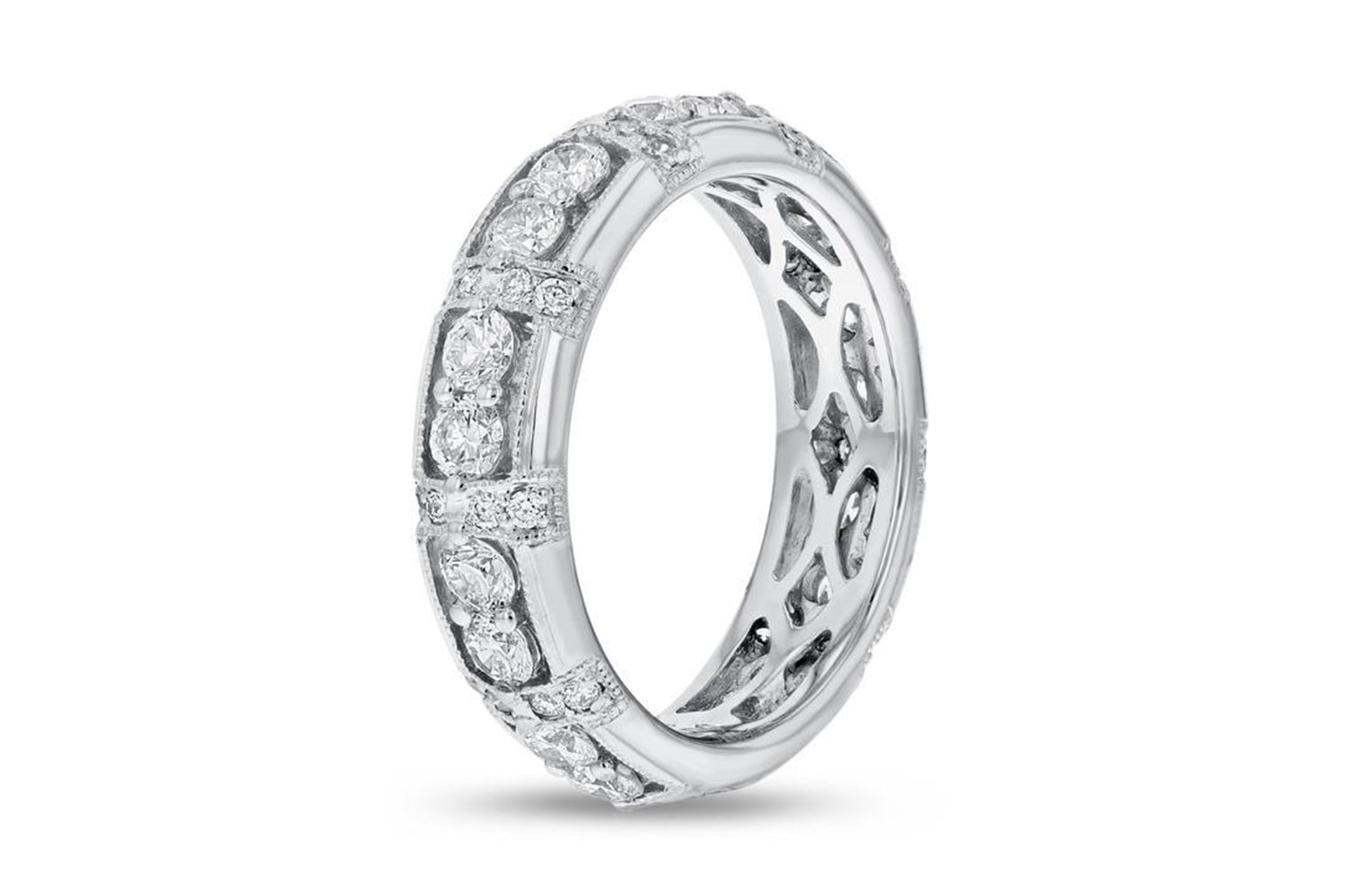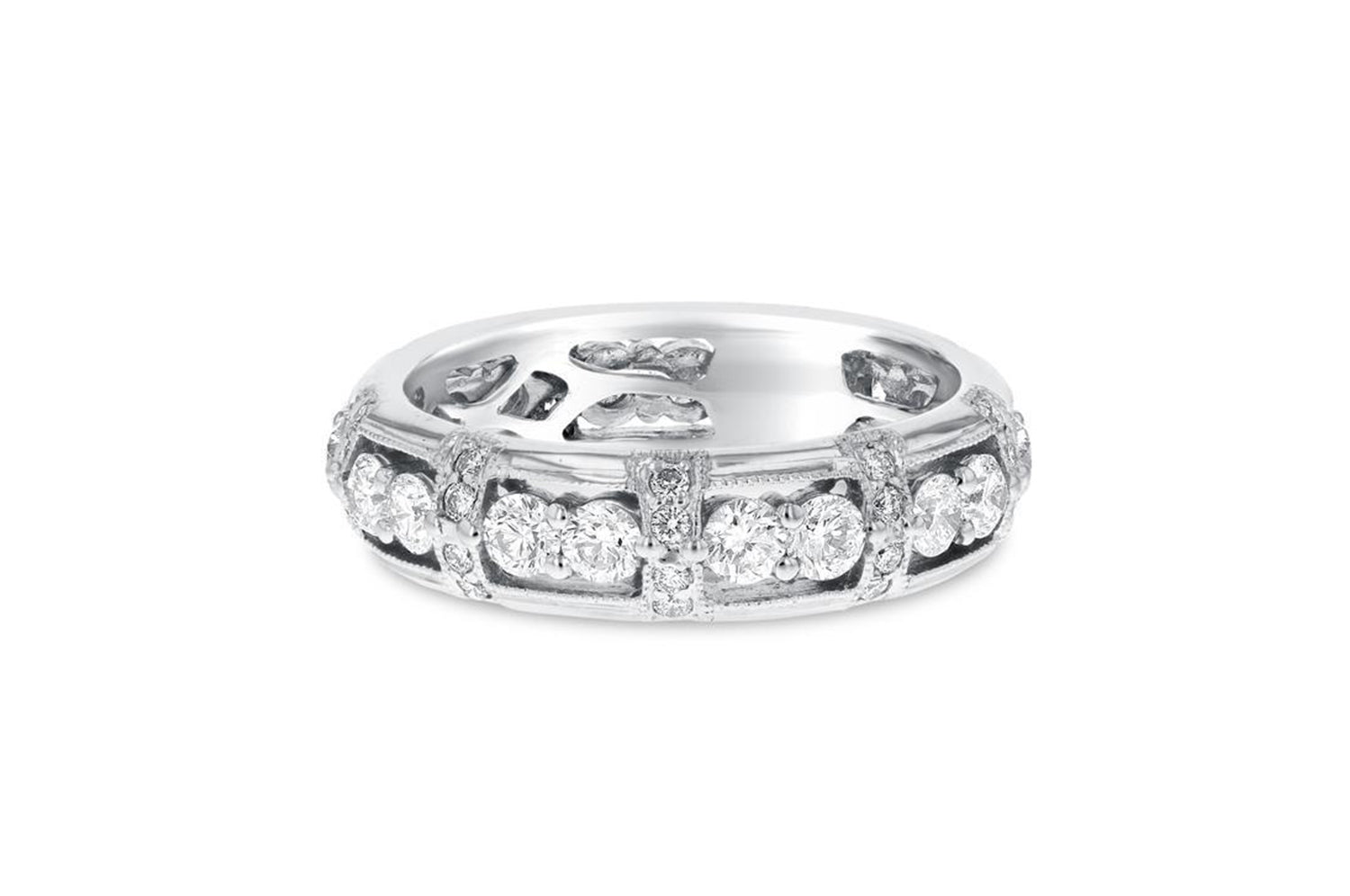 18K White Gold Diamond Wedding Band, 1.50 Carats