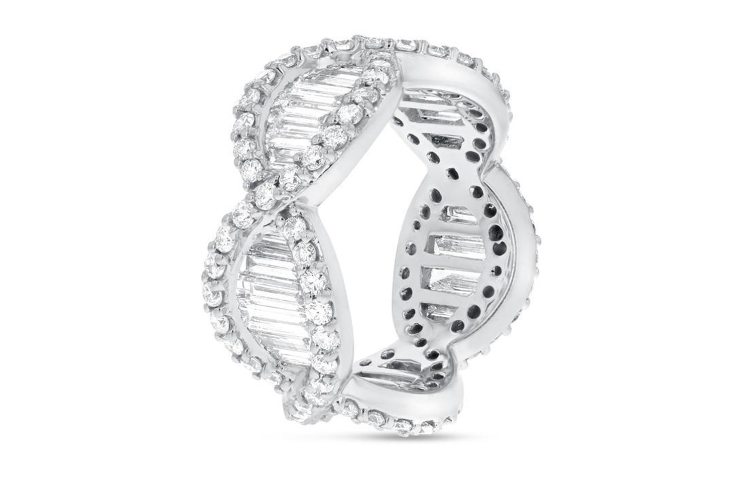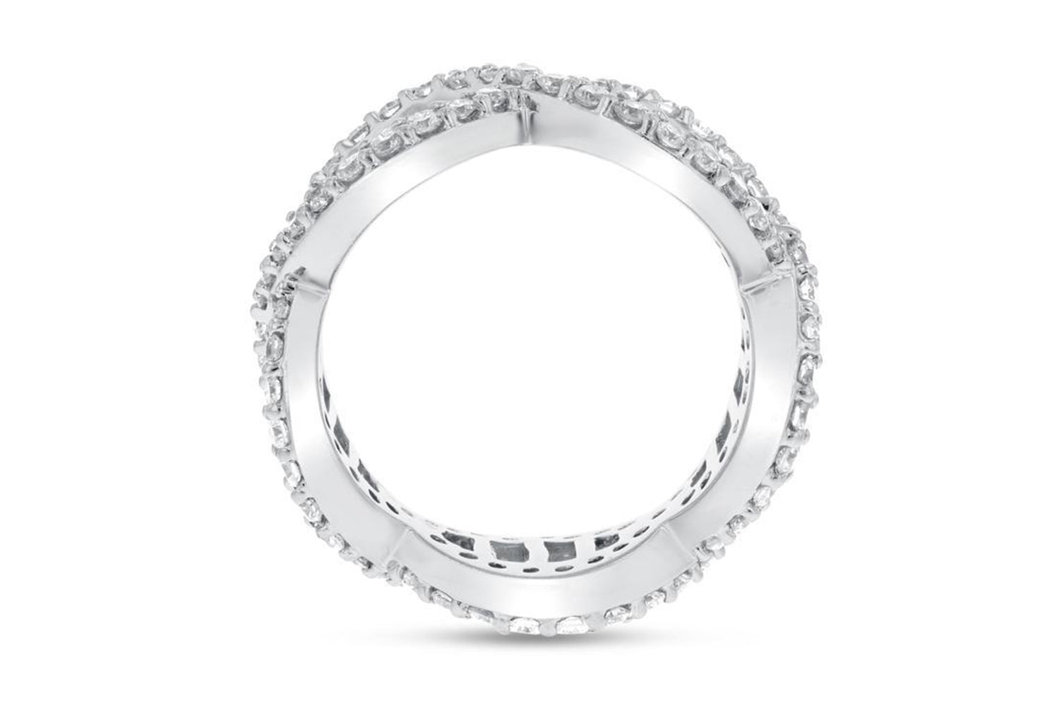 This diamond statement ring features natural diamonds set in 18k white gold. Weighing a total of 3.88 carats.