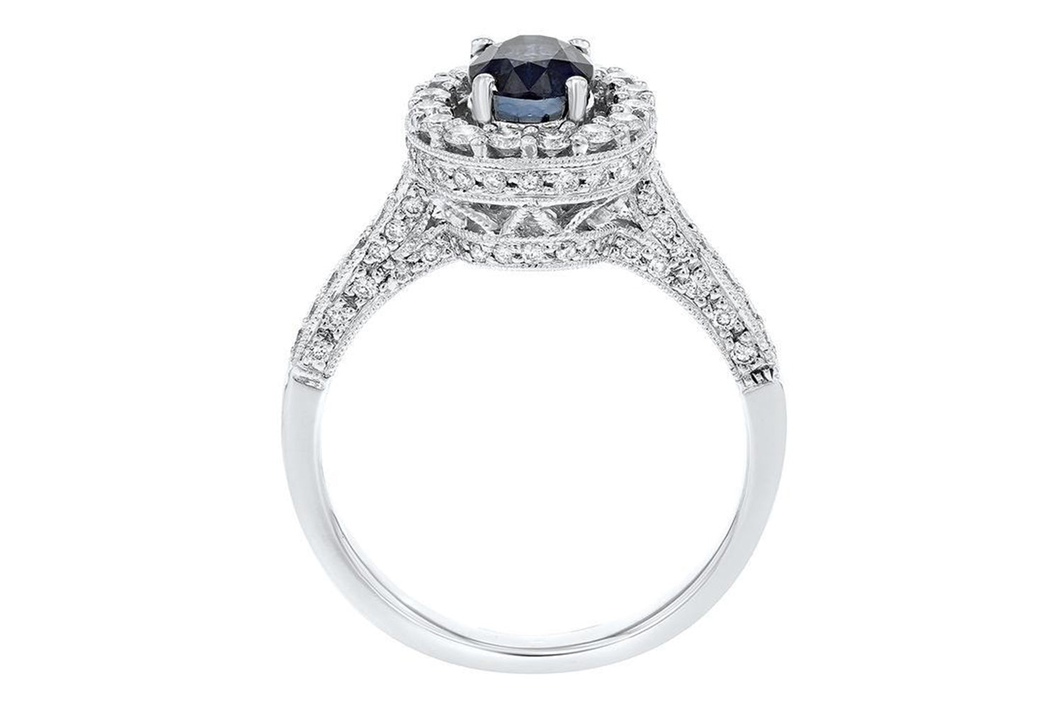 This perfect sapphire & diamond engagement ring features natural sapphires & diamonds set in 18k white gold. Weighing a total of 2.00 carats.