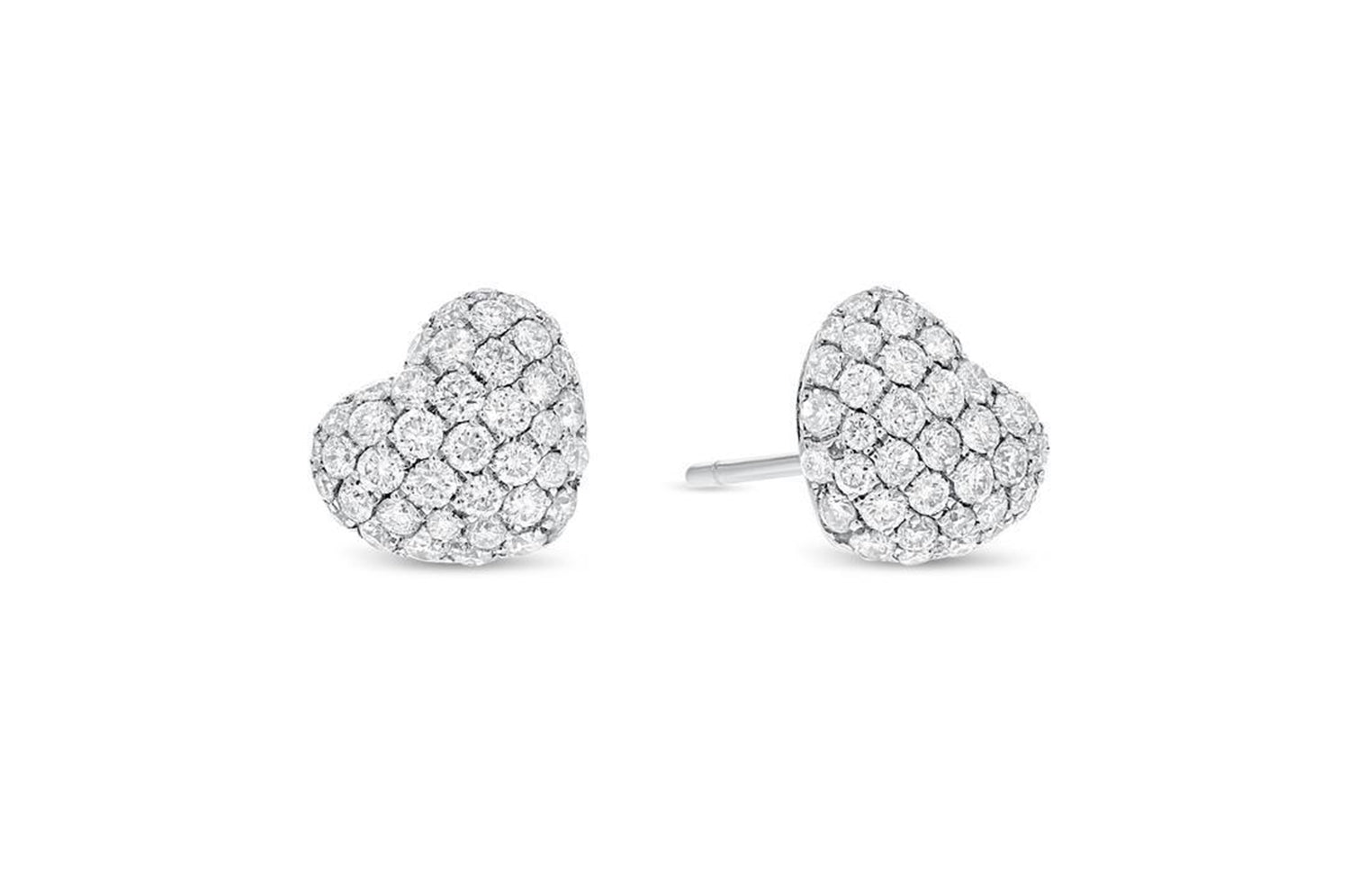 These diamond earrings feature natural diamonds set in 18k white gold heart shaped . Weighing a total of 1.04 carats. These VS clarity diamonds are sure to have excellent brilliance!