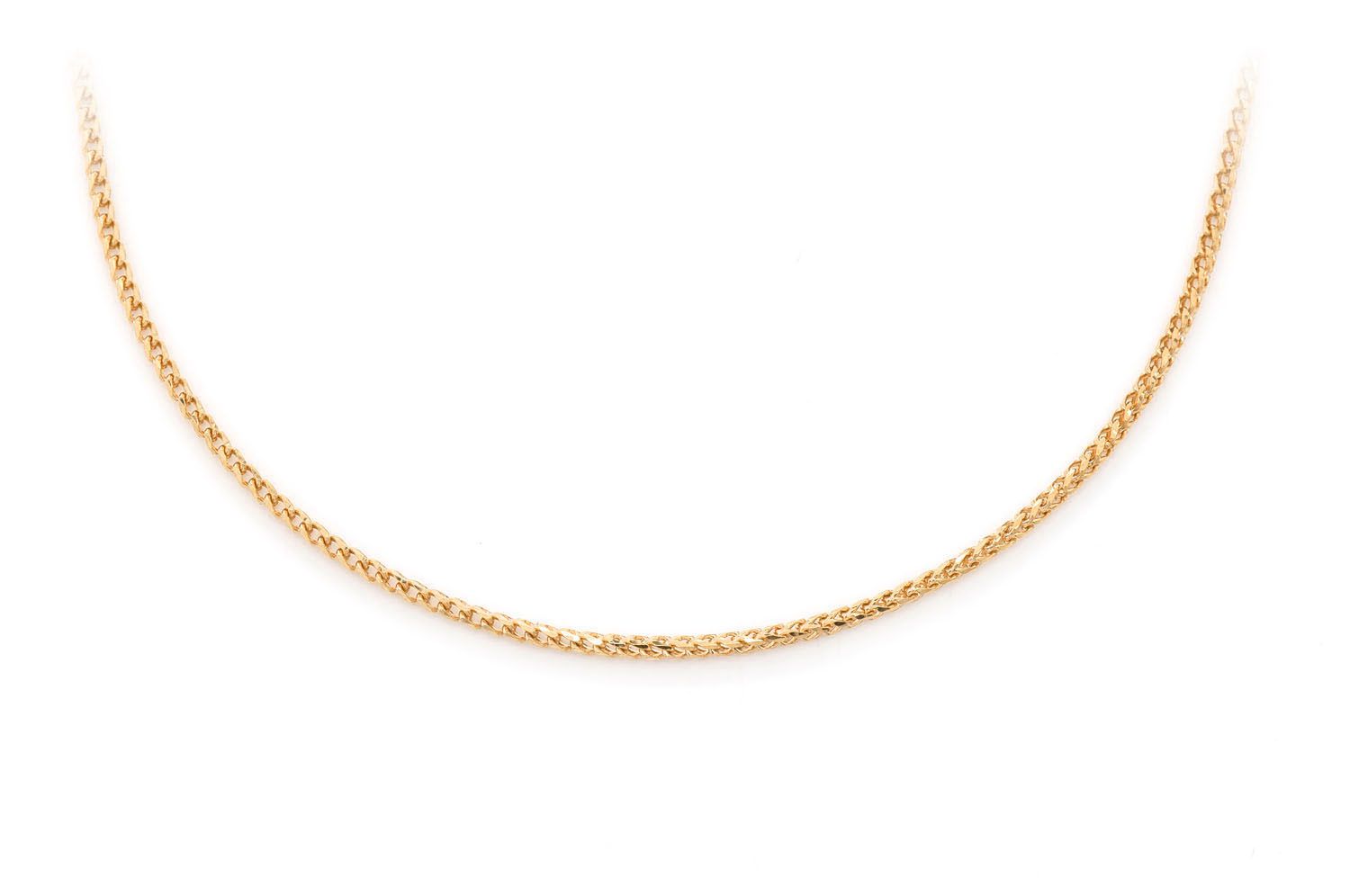 This Maison Sorel Franco Gold Chain is made of solid 14K Yellow gold and is 1.5mm thick. You may choose your desired length in the dropdown.