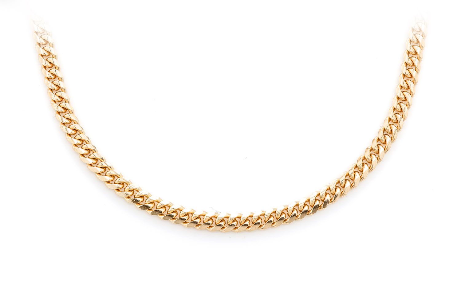 This Maison Sorel Miami Cuban Gold Chain is made of solid 14K Yellow gold and is 3.5mm thick. You may choose your desired length in the drop-down.