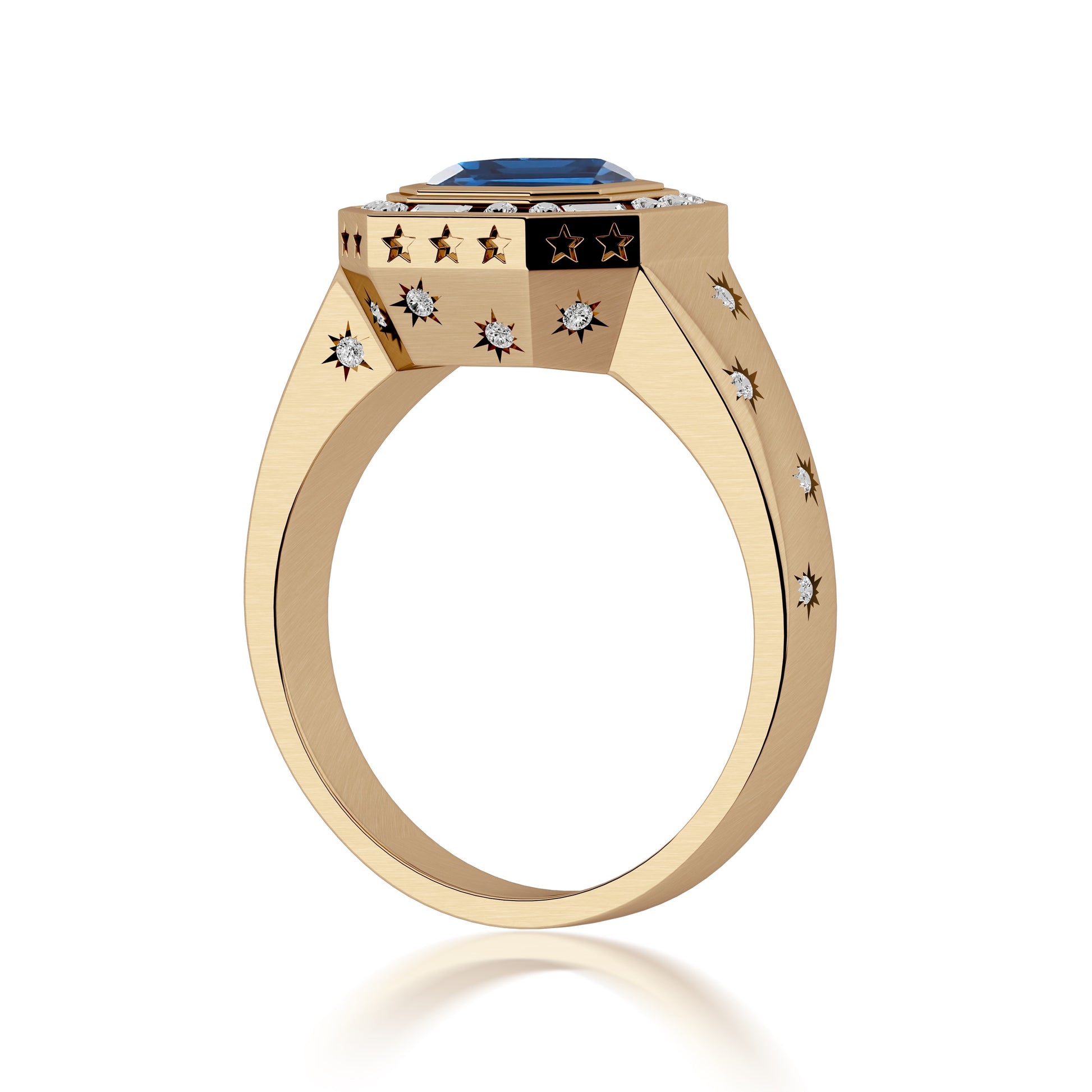 18kt Gold African Blue Topaz and Diamond 'Morse Code' Flip Ring