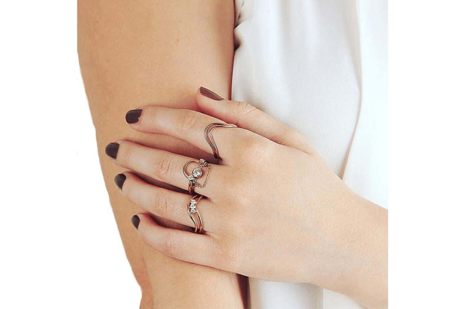 Hand forged 14k yellow gold arc ring with white sapphire joints