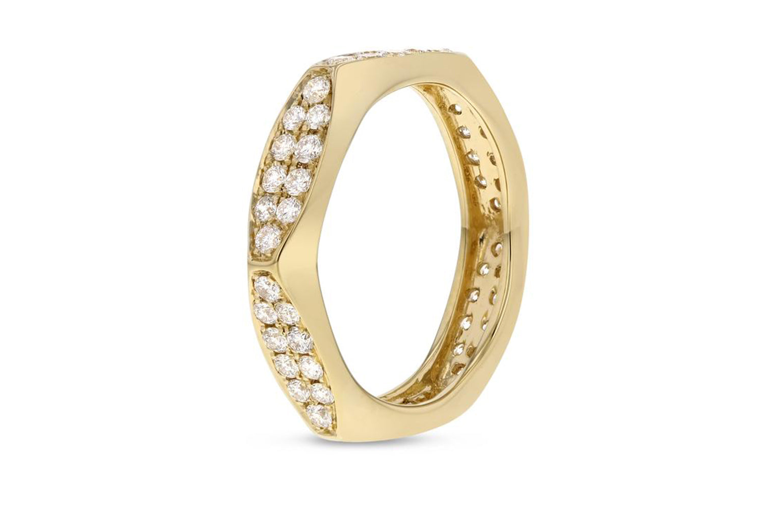 This diamond band features natural diamonds set in 18k yellow gold. Weighing a total of 0.93 carats. Perfect wedding band or stackable ring.