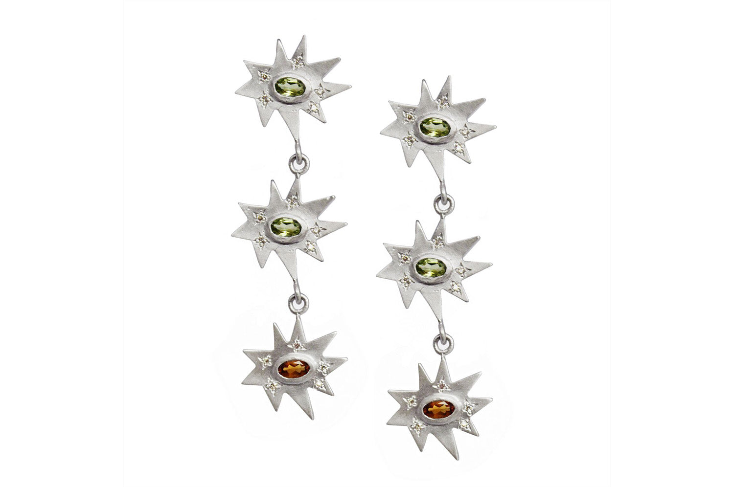 Silver Triple Stellina Earrings: Peridot, Citrine- Emily Kuvin