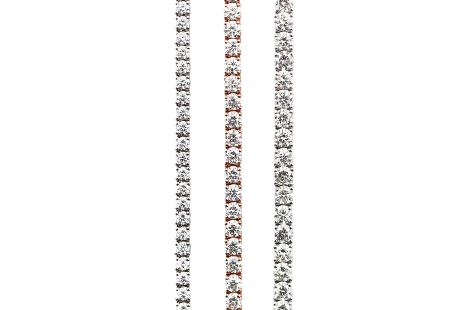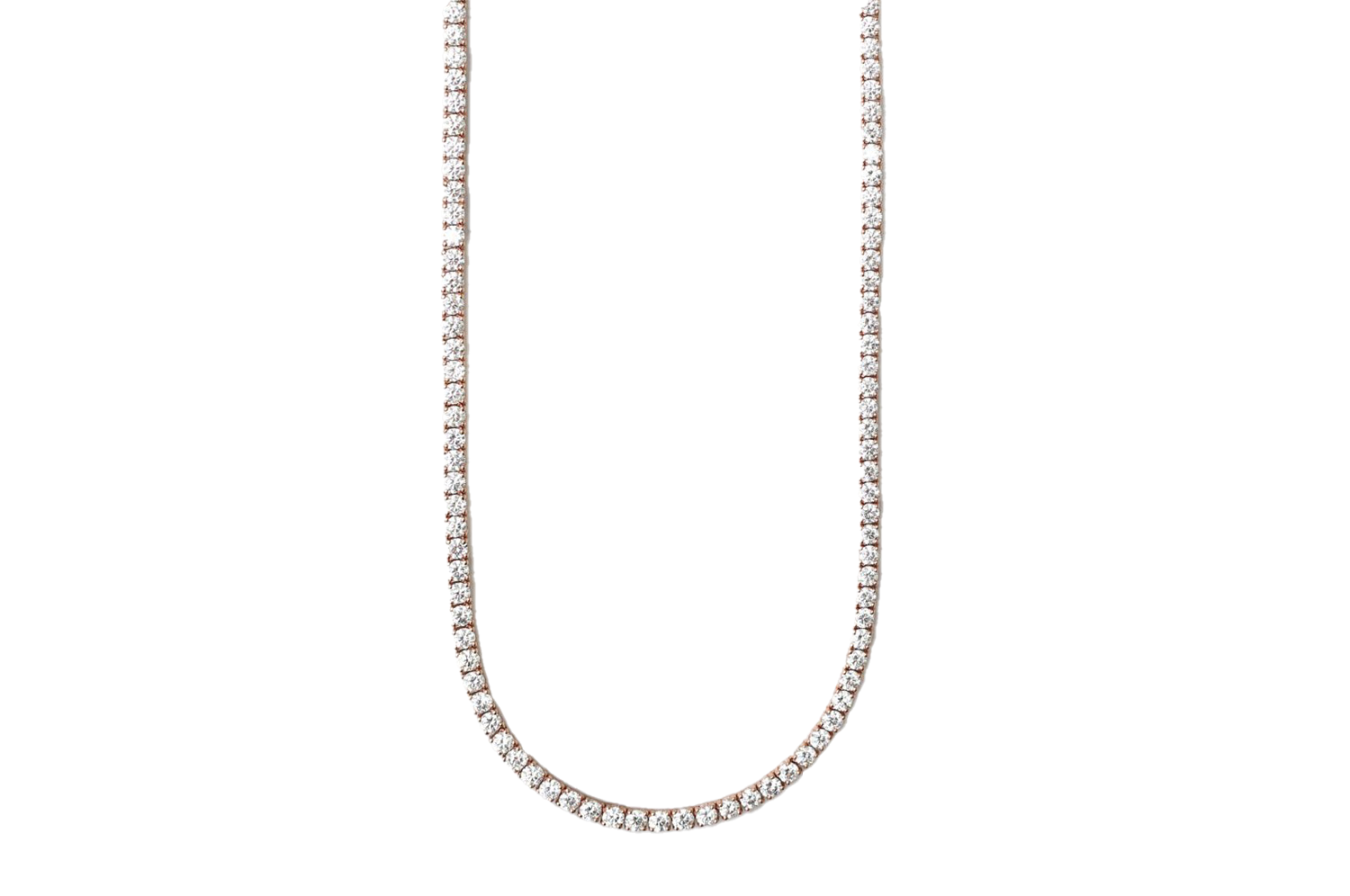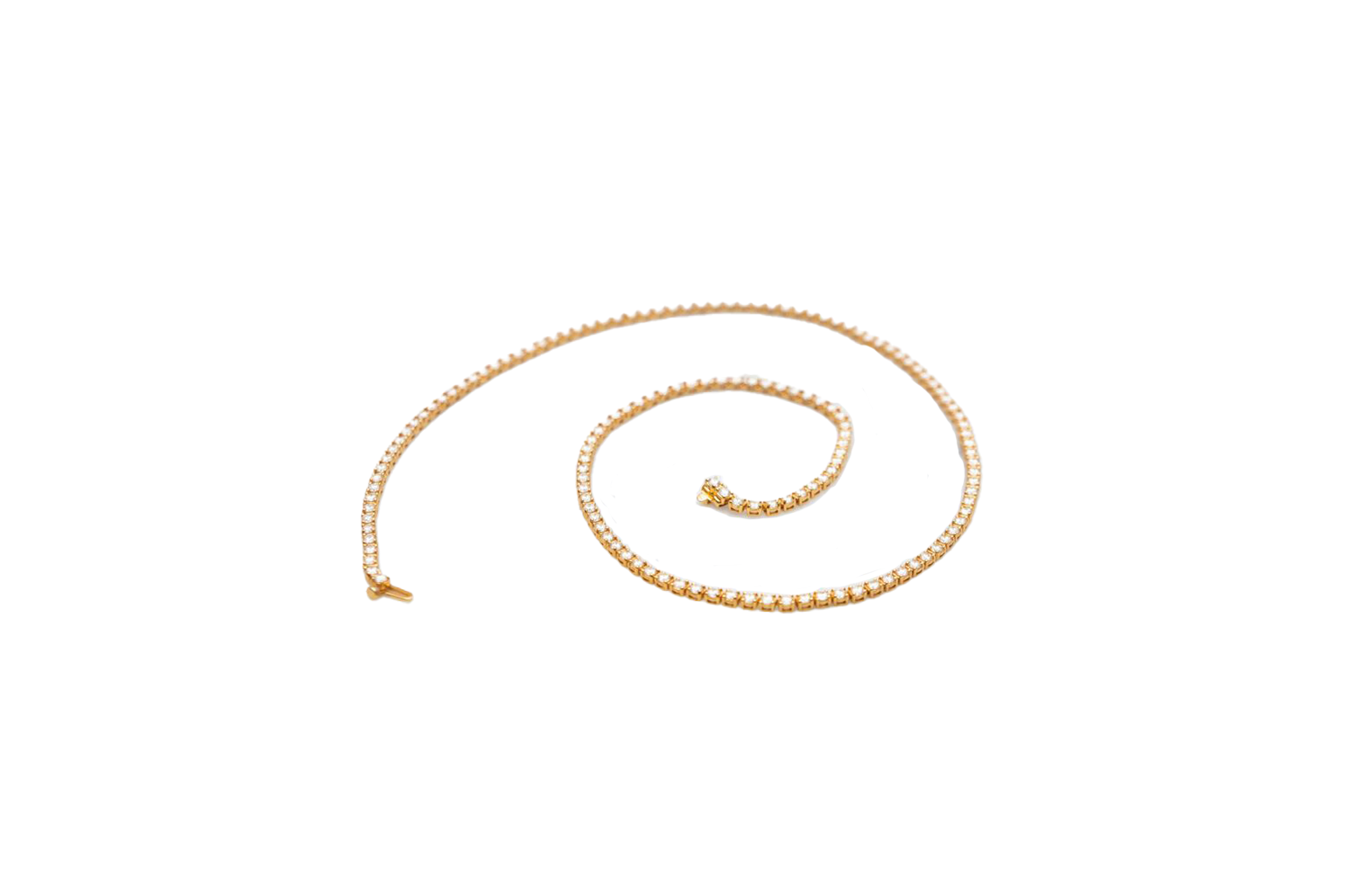 Round brilliant diamonds, this classic tennis necklace drapes perfectly for an elegant and classic look.